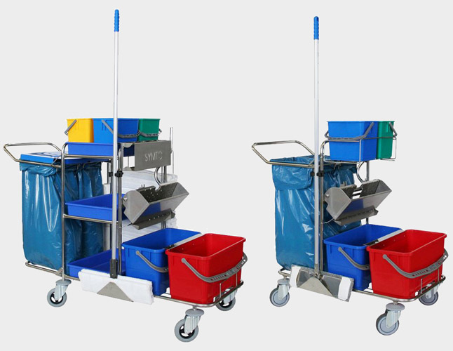 | Grundgestell | Edelstahl mit Rollen und Kantenabweiser, inkl. Abfalleinheit 2 x 70 Liter Mopphalter Edelstahl V2A |
